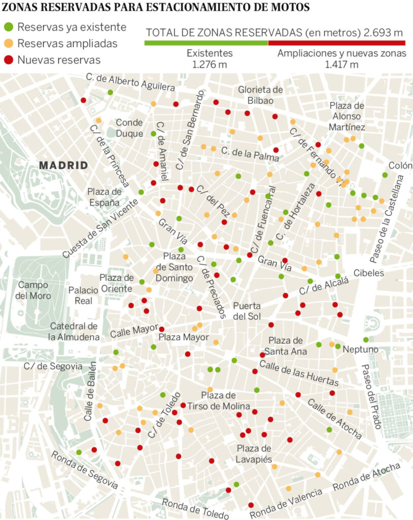 Otra gran novedad es que las motos sin etiqueta tampoco podrán entrar. Y eso a pesar de que este nuevo plan está pensado para facilitar la circulación de los vehículos de dos ruedas, para los que se ha aumentar las plazas de aparcamiento. En concreto, los metros lineales en la calzada para estos vehículos pasarán de los 1.276 actuales a 2.693.